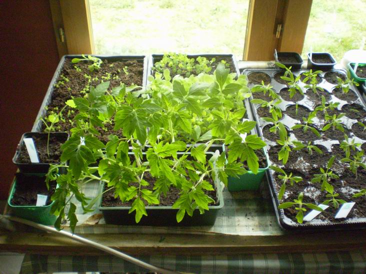 Pour la question des lampes, j'ai utilisé pour les tomates parce que je trouve que ca lève très bien a l'intérieur et que les neons font des plats fort des le départ, mais les ai sorti aux premières feuilles pour les endurcir.