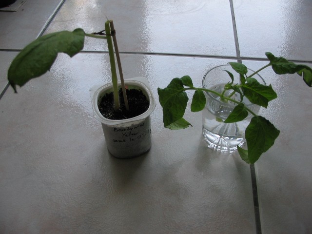 il y a eu suppression des cotylédons surtout parce que je souhaitais enterrer la tige au maximum.
