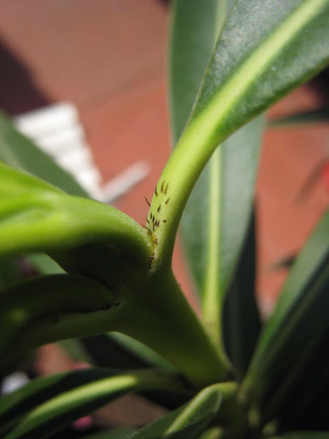2- des petits insectes noirs apparaissent à la base de certaines feuilles