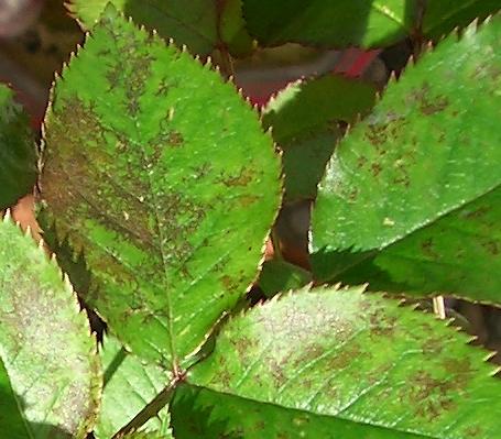 J'ai fait des boutures de rosiers à l'automne dernier et ils ont bien tenu jusqu'à présent. Mais j'ai remarqué hier qu'il y avait des pucerons qui commencaient à s'installer donc j'ai mis un traitement et les feuilles ont des taches marrons que je n'ai pas su associer à une des maladies du rosier que j'ai trouvées...
