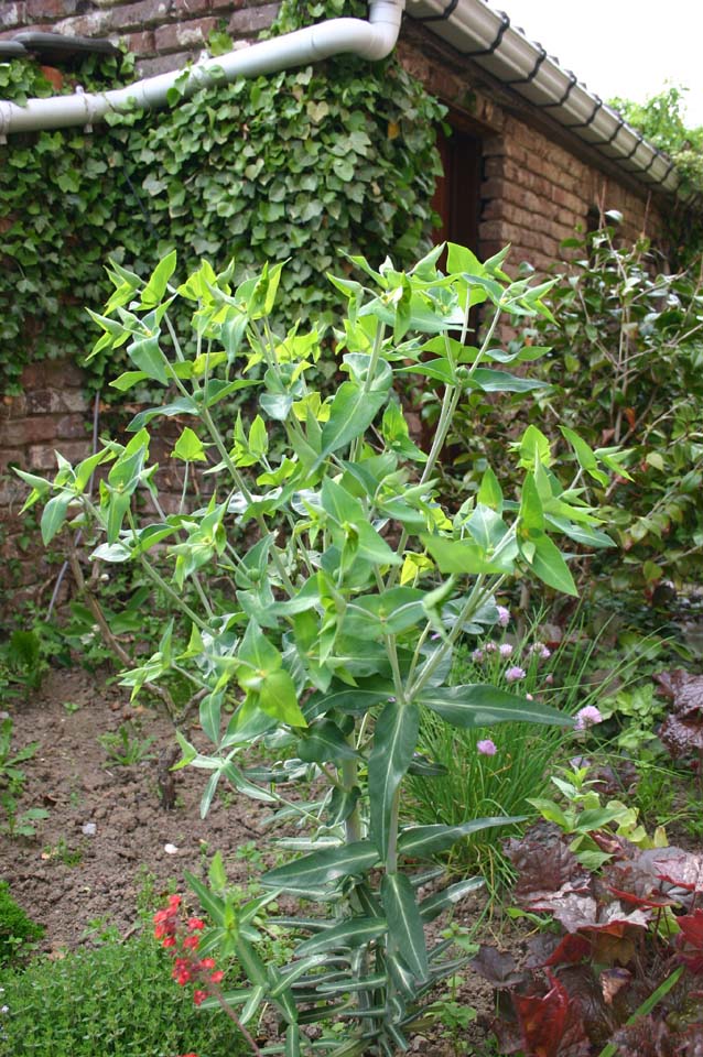 ça doit être euphorbia lathyris, souvent cultivée à cause de sa réputation d'éloigner les taupes