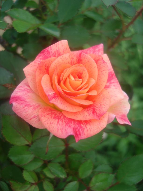 je ne connais pas le nom de mon rosier que je pense très banal mais je reste sous le charme de ses fleurs oranges qui tiennent longtemps ouvertes en plus