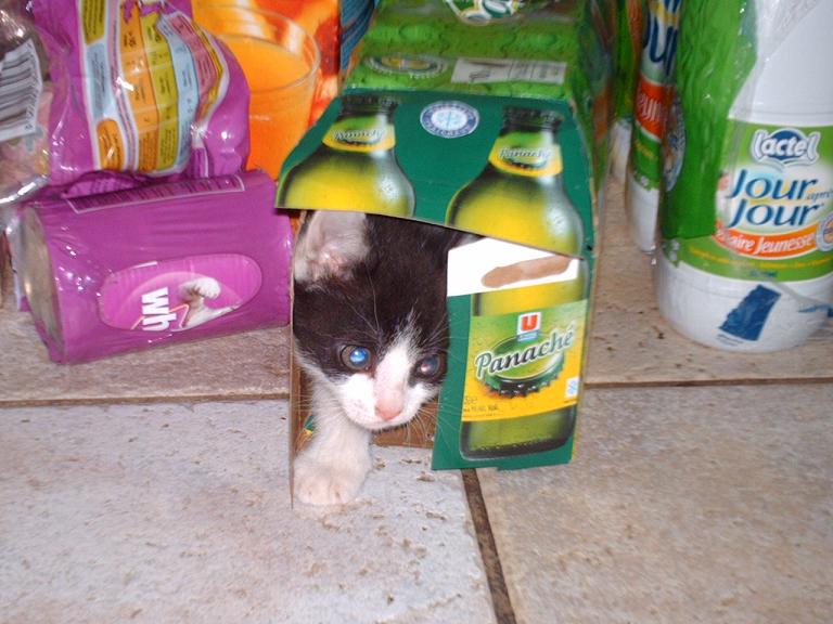 Il est curieux de tous (pour l'anecdote nous avons acheter un pack de panachés, éclair a élu domicile dans le carton :lol:.