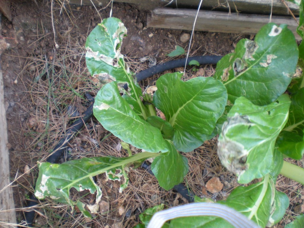 Voilà l'état de mes blettes (poirées) chaque année, les insecticides pas trop méchant de contact (pyrèthre ou les purins/solution d'ail par exemple) servent à rien puisque les mouches viennent pondre et se cassent, et j'aimerais éviter les insecticides rémanent qui sont des plaies (comme le décis), donc je suis preneur de toute suggestion (j'ai essayer le souffre et le marc de café comme répulsif sans succès, et enlever tous les oeufs à la main tous les jours est bien trop compliqué)