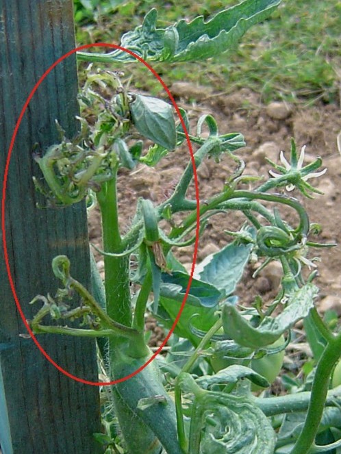 Cela se traduit par le dépérissement de la tige terminale qui brunit et s'assèche et le flétrissement des jeunes feuilles qui ne se développent pas. (Voir la photo)
