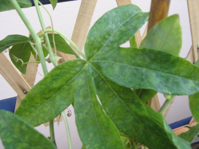 Bonjour, j'ai acheté une passiflore il y a quelques jours mais je crois qu'elle a une carence car les feuilles ne sont pas vertes uniformément, elles sont des taches vert clair (voir photo un peu floue)