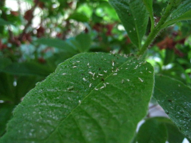 Je vais essayer l'eau savonneuse, sans doute plus facile que de trouver des coccinelles.