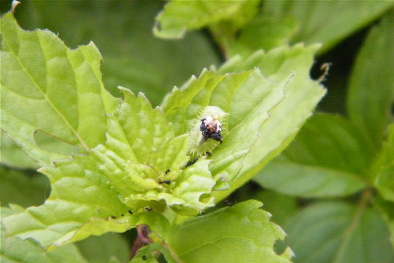 J'ai un souci avec ma menthe qui est dévorée par une petite chenille "chevelue" verte et plutôt plate (peut-être une cochenille).