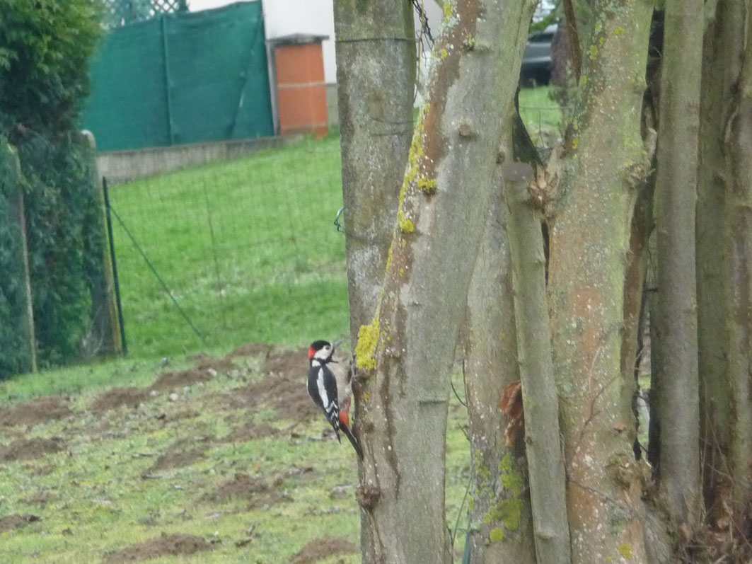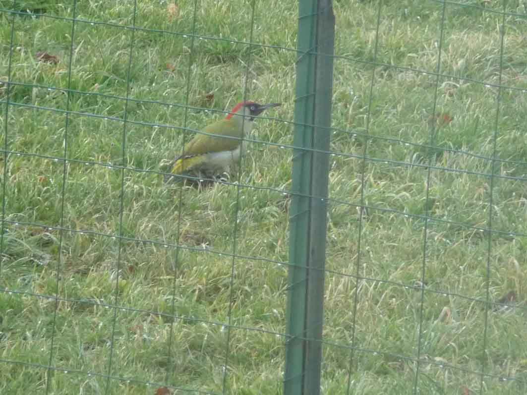 le deuxième oiseau est un pivert (ou pic vert) très joli mais très farouche, pour le photographier je dois faire à travers les vitres sans ouvrir la fenêtre.