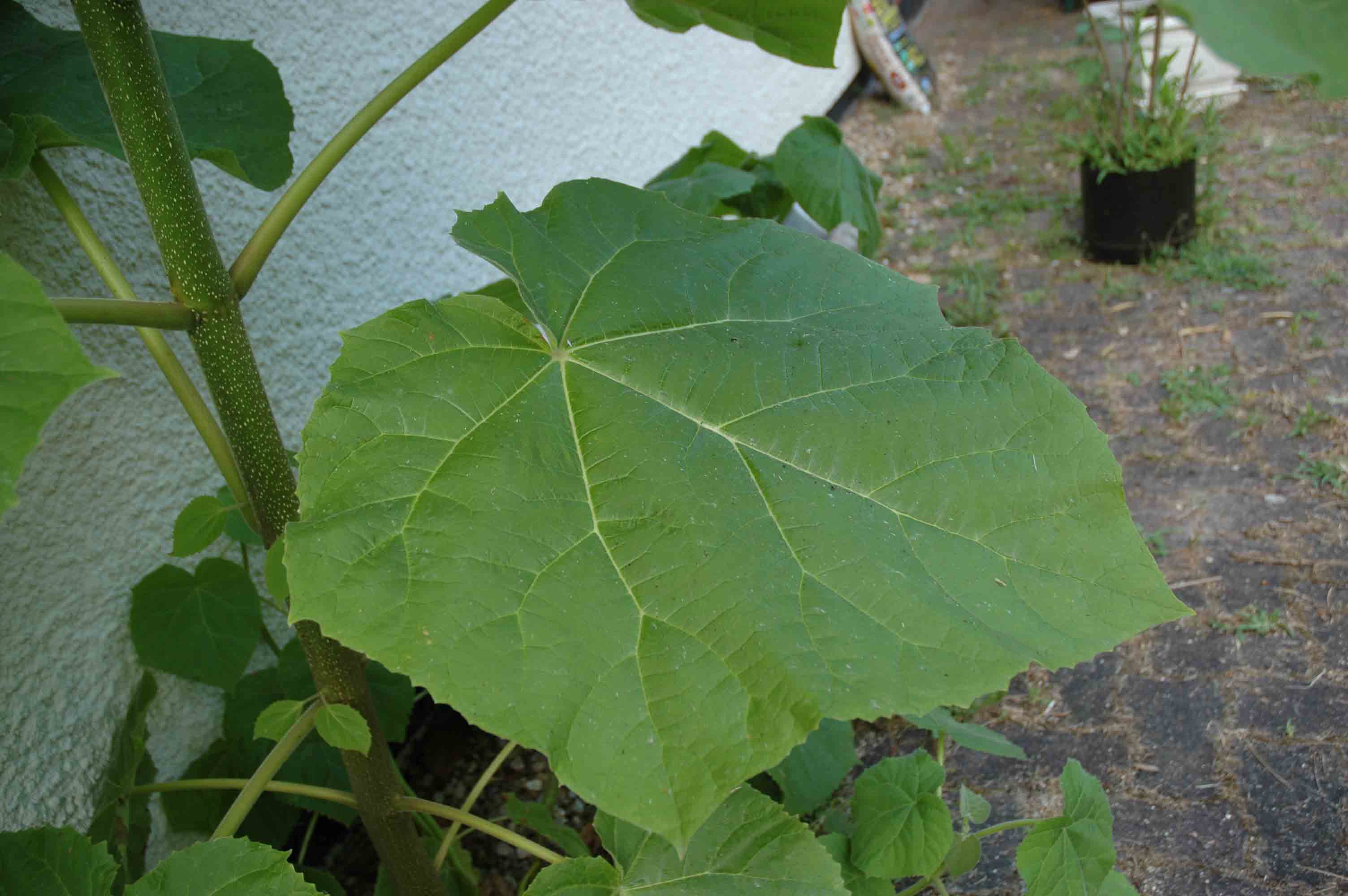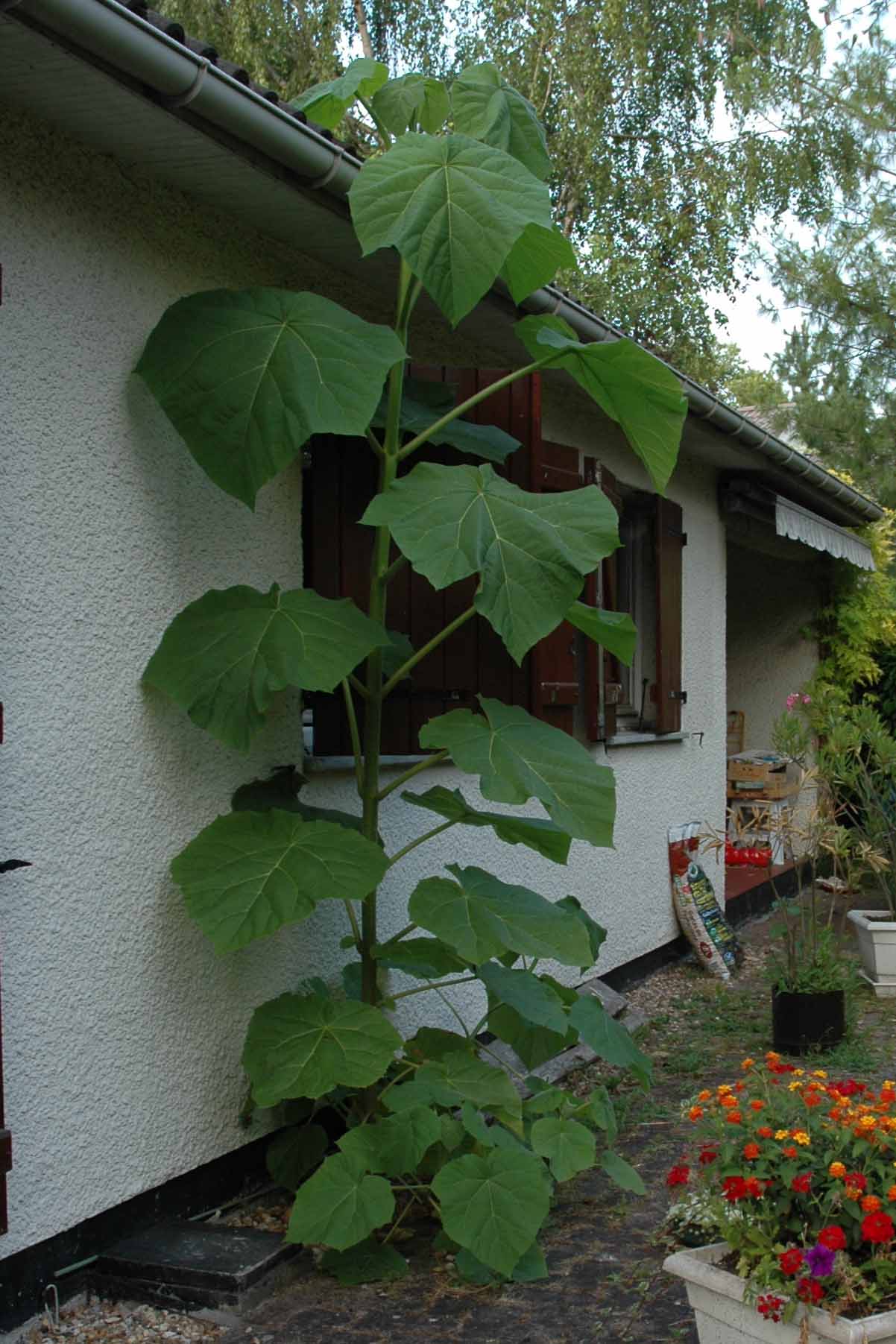En rabattant tous les ans le jeune sujet planté, il se maintient sur des tiges de 2.50/3m et des feuilles de + de 50 cm de large en effet. (prévoir un trou de plantation adapté à ce grand arbre genre 1m3)... Bonjour de la Bretagne.. :pmt: