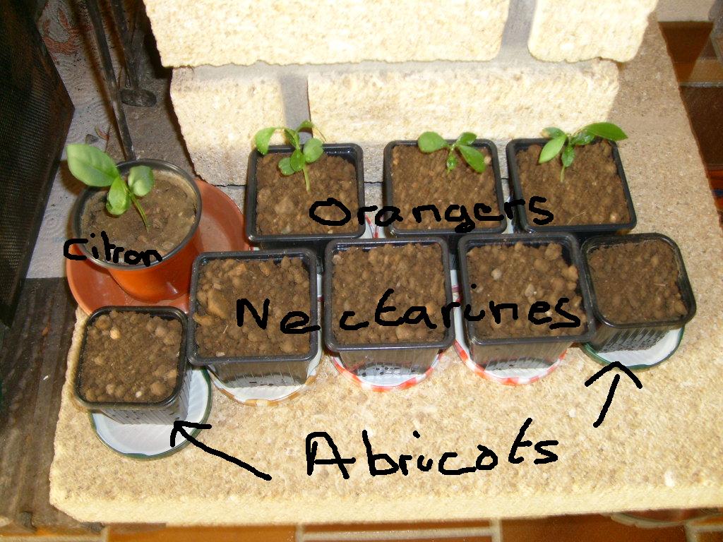aujourd'hui ils sont toujours là je les ai changés de pots et j'ai aussi planté trois noyau de nectarine et 5 d'abricots