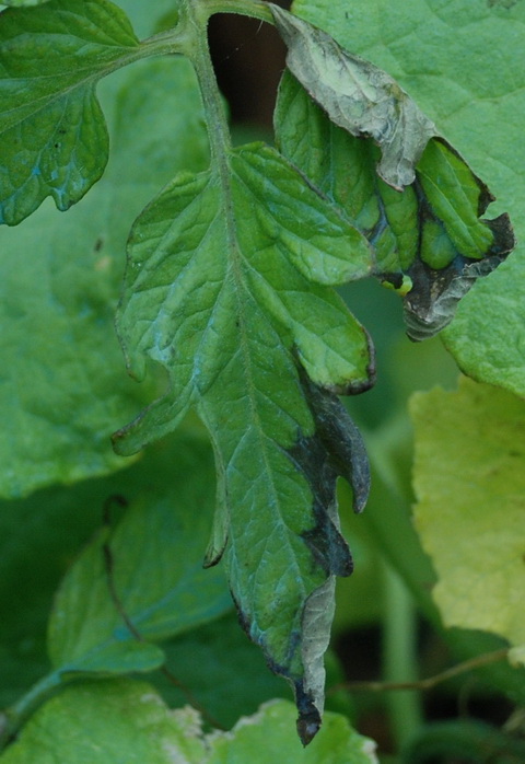 Les tiges et les fruits ne semblent pas sous le feu de ce mal, le mildiou.