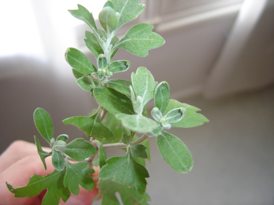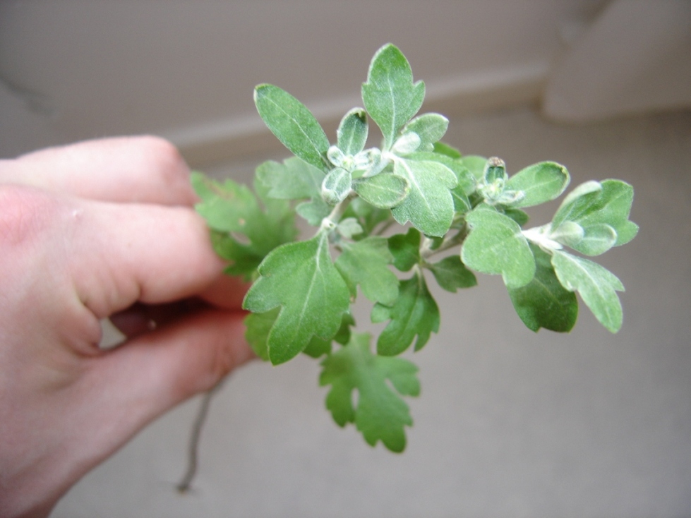 Voici une plante d'environ 30 cm de hauteur. Les feuilles sont velues et dégagent un parfum agréable quand on les frotte entre les mains. Elles sont très découpées.