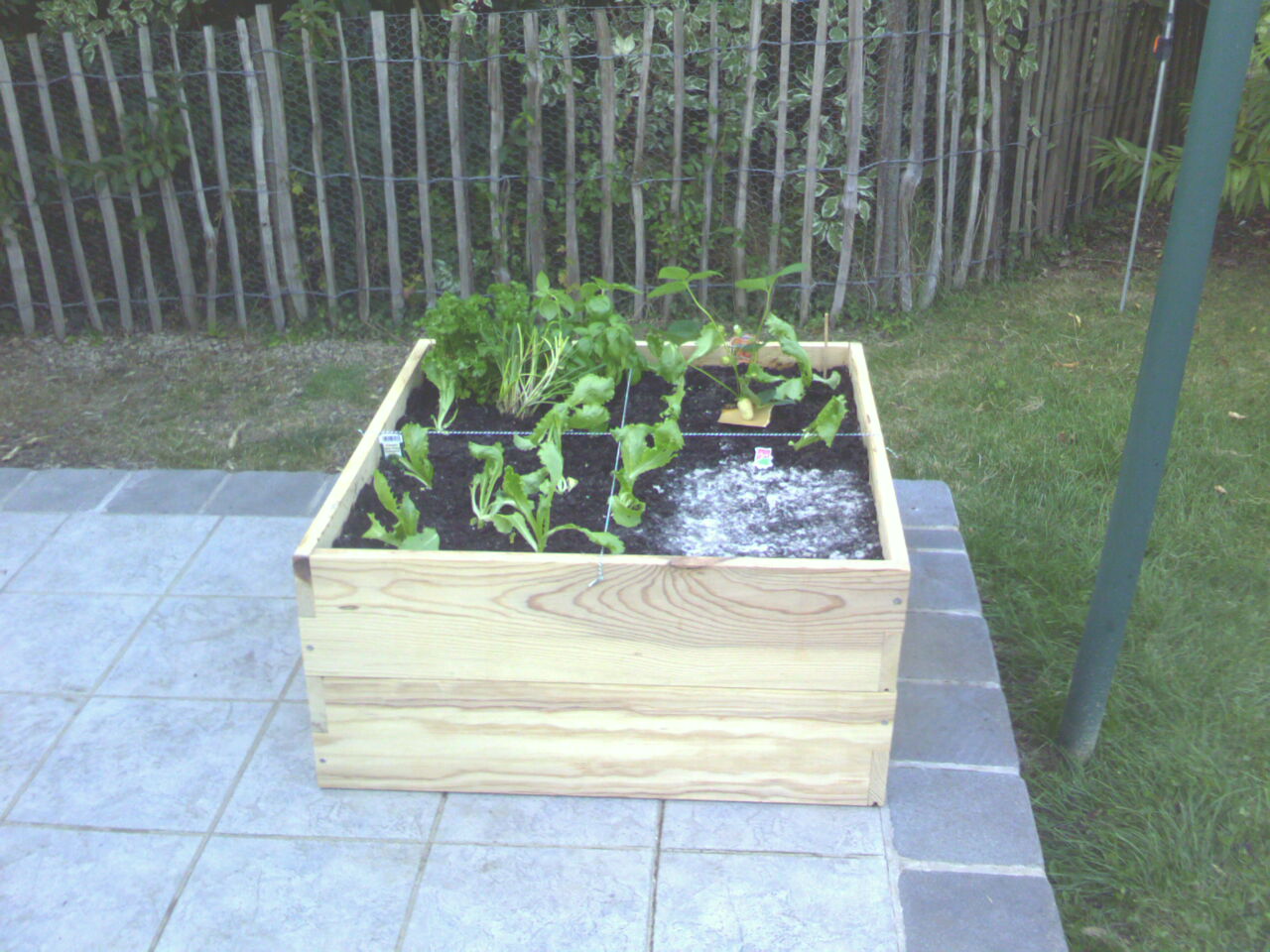 Il y en a un de 120/120/20 de haut que je vais mettre dans le jardin et un de 80/80/40 de haut que je mets sur la terrasse pour les condimentaires.