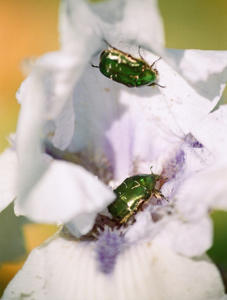 De toutes façons dans les jardins c'est presque toujours Cetonia aurata :D mais ce qu'il faut garder à l'esprit, c'est que les cétoines sont les recycleurs ultimes du bois, ce sont elles qui fabriquent le terreau, grâce auquel les iris peuvent pousser !