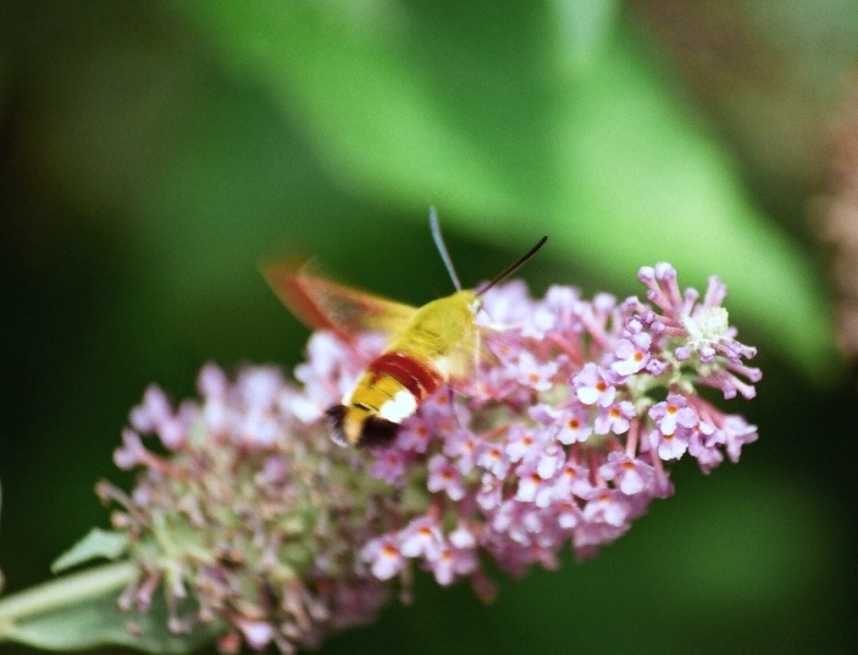 peut-être celui-là alors, désolée pour le flou, trop rapide pour moi, n'a fait qu'un passage trés fugitif!!Hemaris fuciformis-Sphinx gazé