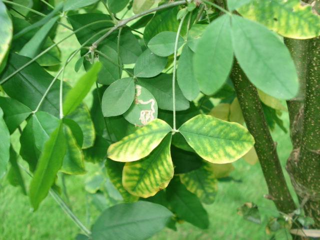 Sur le laburnum on voit de la mineuse et sans doute une chlorose et sur le Prunus sans doute de la criblure