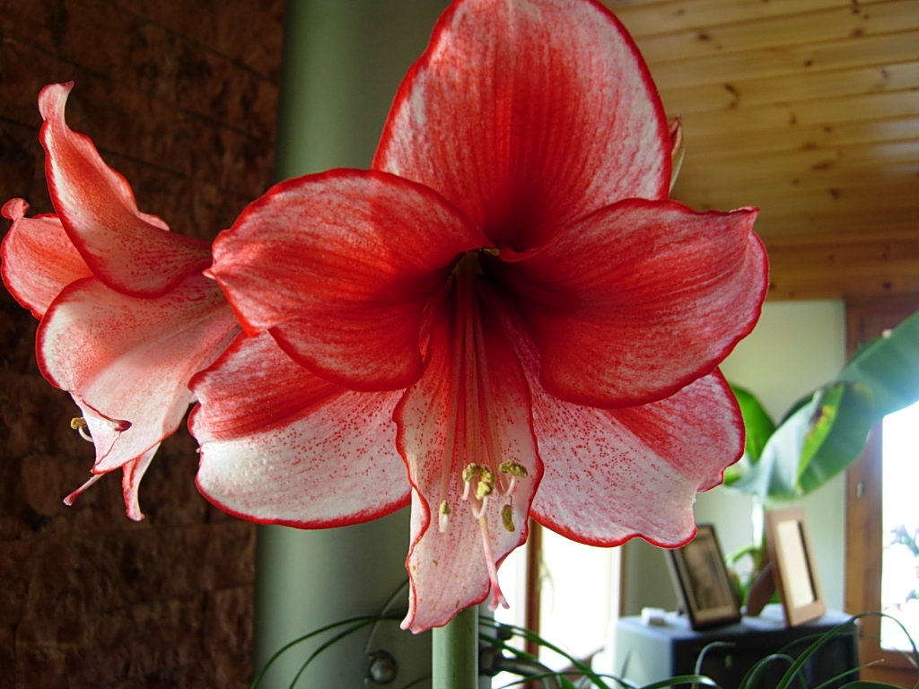 Mon amarylis a fleuri comme d'habitude en hiver. Au printemps je l'ai mis dehors à l'abri et je l'ai pour ainsi dire oublié....