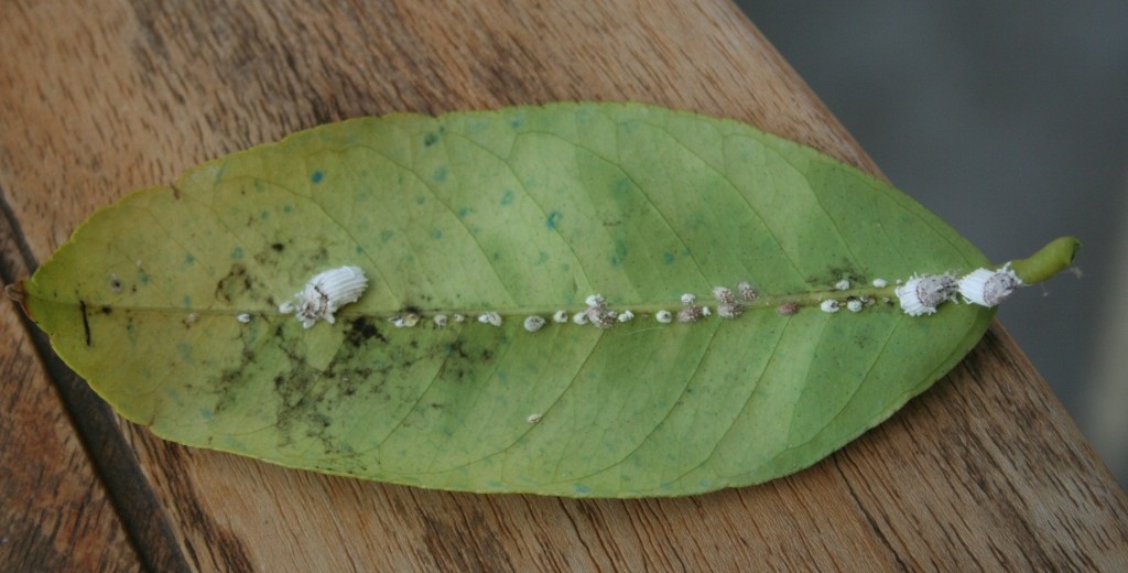Apparition depuis quelques jour de petits "cocons" blancs à la face inférieures des feuilles, voir photo, merci, cordialement, JC