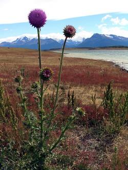 Si je vois bien c'est Carduus nutans une plante européenne qui s'est naturalisée là-bas.