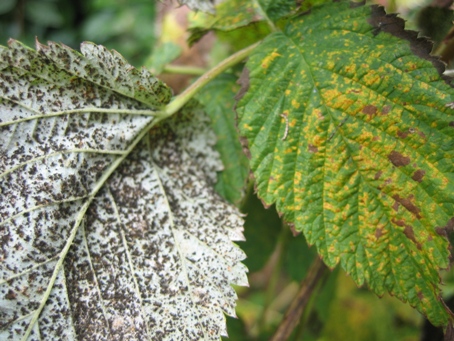 Petite question d'un novice: mes framboisiers perdent toutes leurs feuilles. La feuille se colore en orange, se flétrit, se sèche et tombe. Sous la feuille des petites tâches noires, comme de la poussière, apparaissent. L'année dernière il me semble que cela n'avait pas fait ça. J'ai pensé à de la rouille mais ça ne colle pas avec ce que je vois sous la feuille.