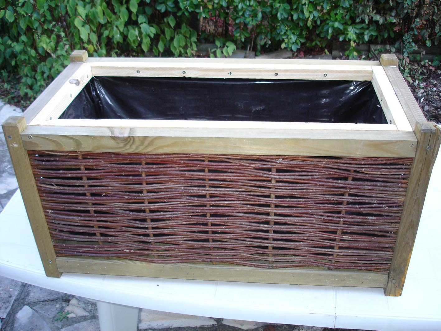 Comme on peut le voir sur les photos, ils sont en osier avec, à l'intérieur une bâche noire mais elle n'est pas percée. Je peux donc pratiquer des trous sans problème et avec ça j'espère réussir correctement.