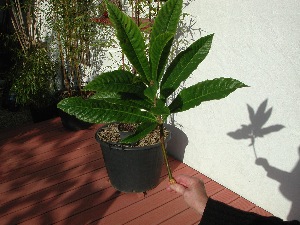 J'ai planté il y a à peu près 3 ans un noyau de néfle (de couleur orange) vendue en supermarché, après l'avoir déguster, dans un pot avec du terreau. Il est maintenant en pleine terre et mesure 2 mètres à peu près. Je viens de m'apercevoir tout à l'heure qu'une des branches porte des fleurs. C'est un bel arbre de décoration qui ne perd pas ses feuilles et de plus donne des fruits :top: