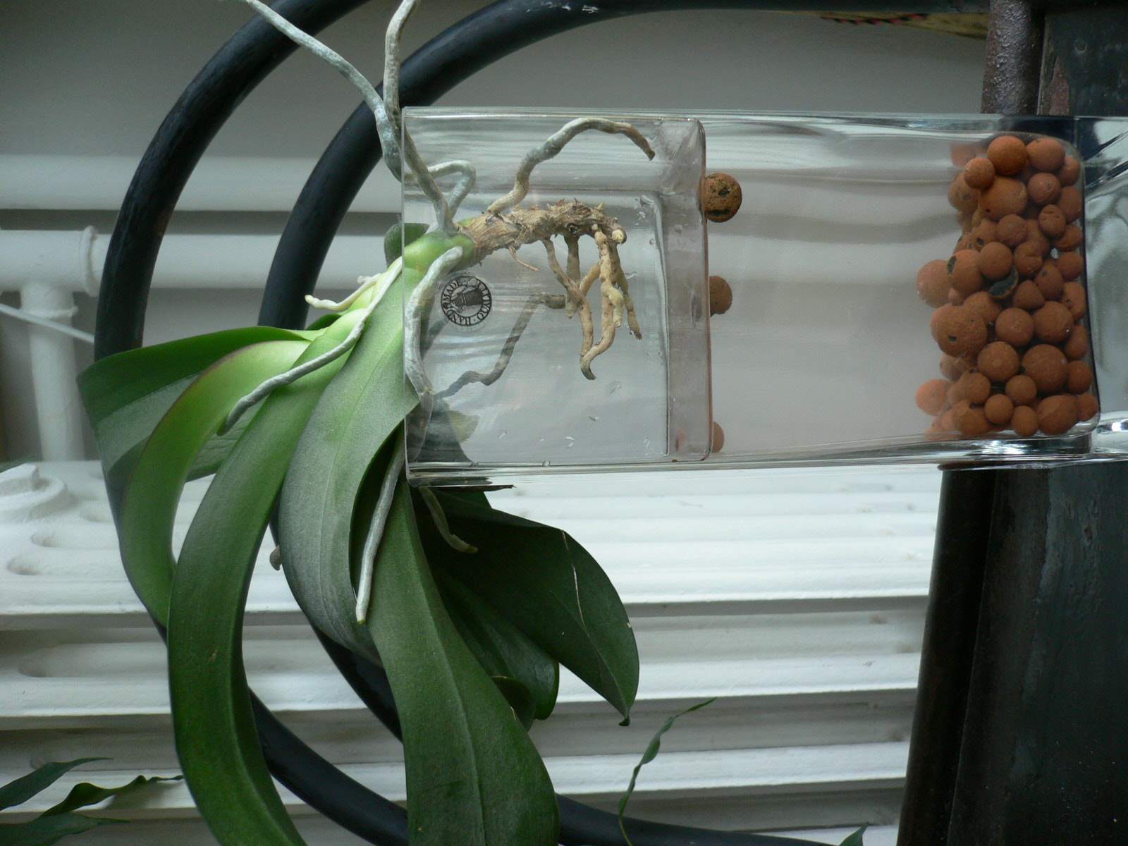 Il y a le vase et les billes et l eau et dessus, a la surface des billes, le pot. Il n y a pas d eau dans le pot, juste la bulle d air. C est la nuance. Ensuite sur le bord superieur du pot inverse le plus proche du trognon [et la racine, tu l etales dessus le pot] et ensuite re-billes*. Normalement elles devraient se charger d humidite sans etre detrempees et ce sont elles qui vont inciter a la creation des racines.