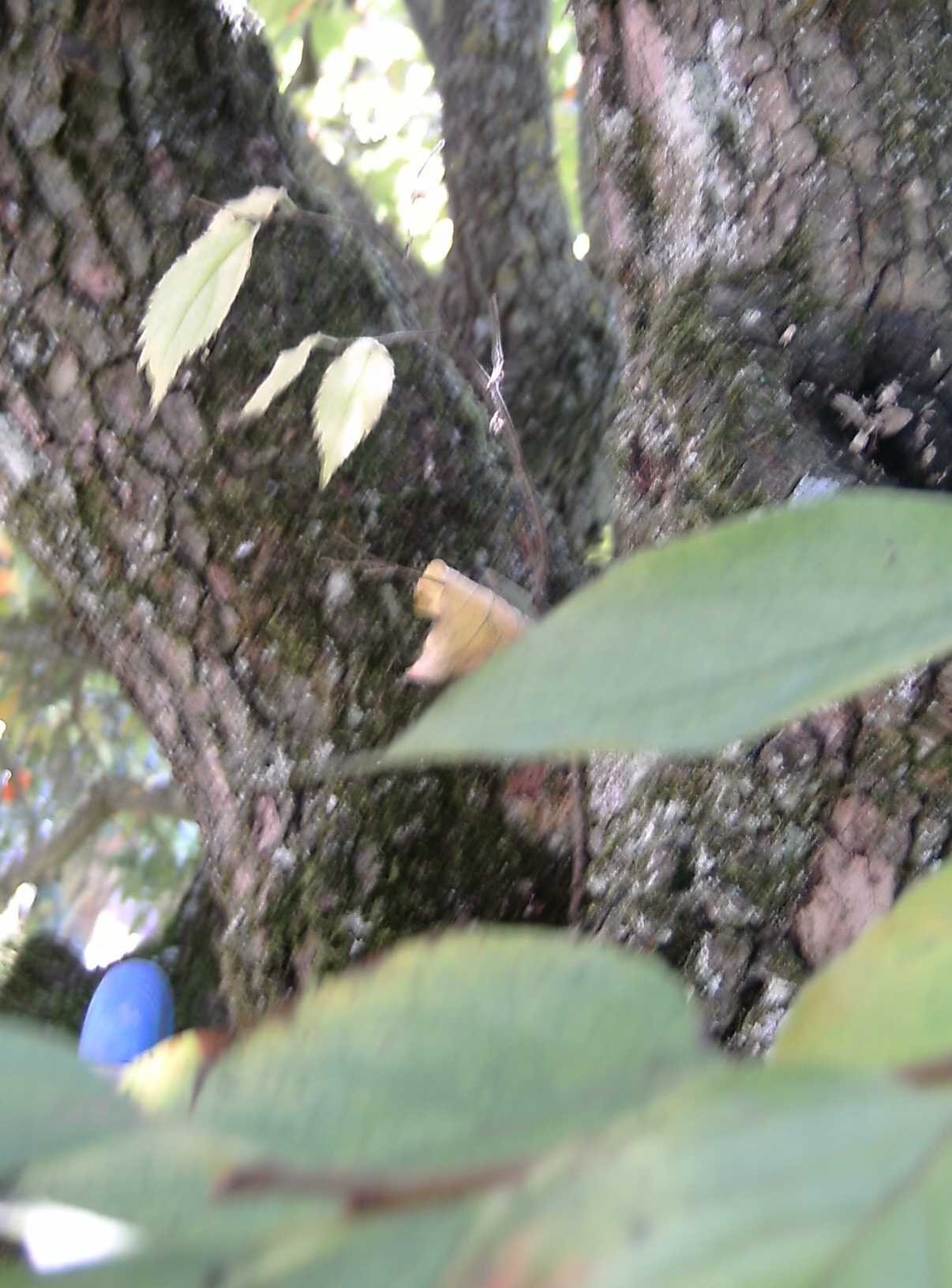 Photo1: photo la moins floue, à 6 mètres j'étais moyennement rassuré et stable. Photo2: photo un peu écarté de l'arbre pour avoir des feuilles du kaki et montrer sa bonne santé Photo3: vue du trou entre les 2 branches, main gauche photo très floue. Merci pour vos lumières.