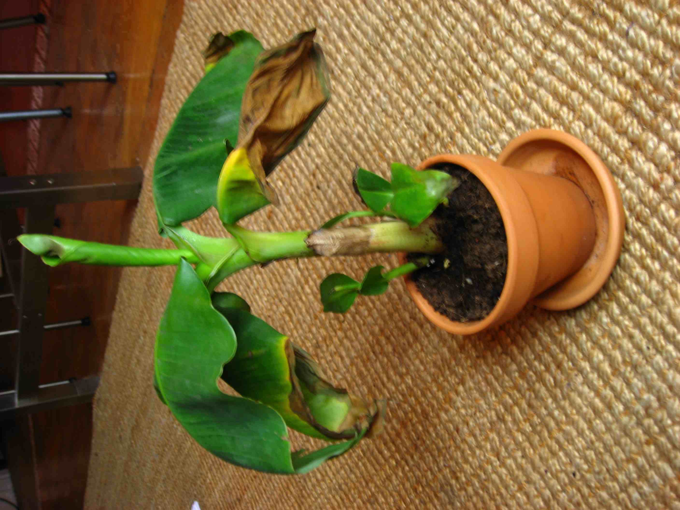 Je vous joins une photo d'un petit bananier acheté il y a peu de temps, et en mauvais état!
