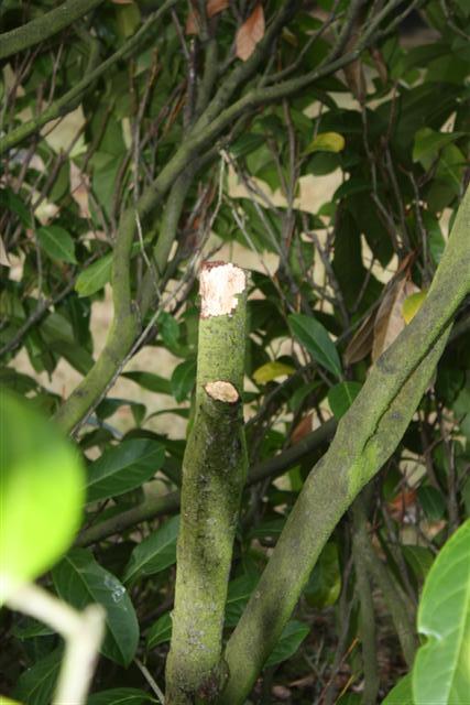 Ce voisin a l air mal au point mais les branches sont encore souples ... quelques feuilles vertes subsistent dessus.