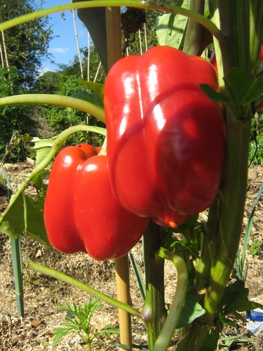 J'ai planté en mai une trentaine de pieds de différentes variétés de piments / poivrons (piquants d'Algérie, Pimiento del Pequillo, Corno di Toro...) mais pour le moment ils sont loin d'être aussi beaux.