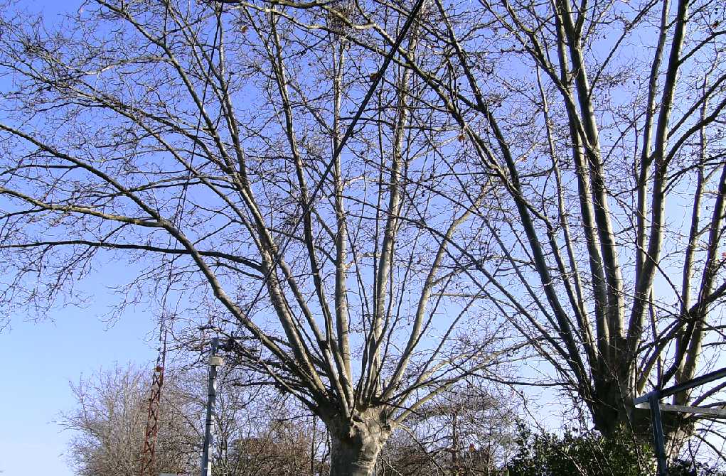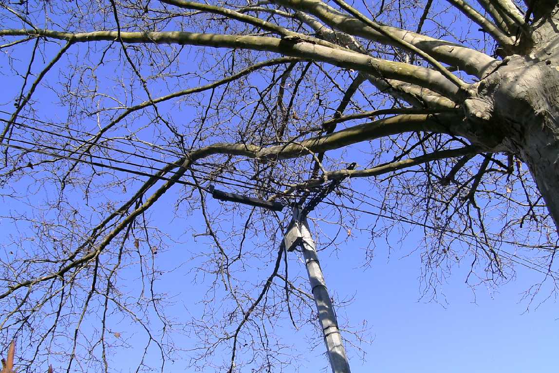 Mes 2 beaux platanes débordent largement au dessus de la route, et en plus ils flirtent avec les fils EDF et téléphone.