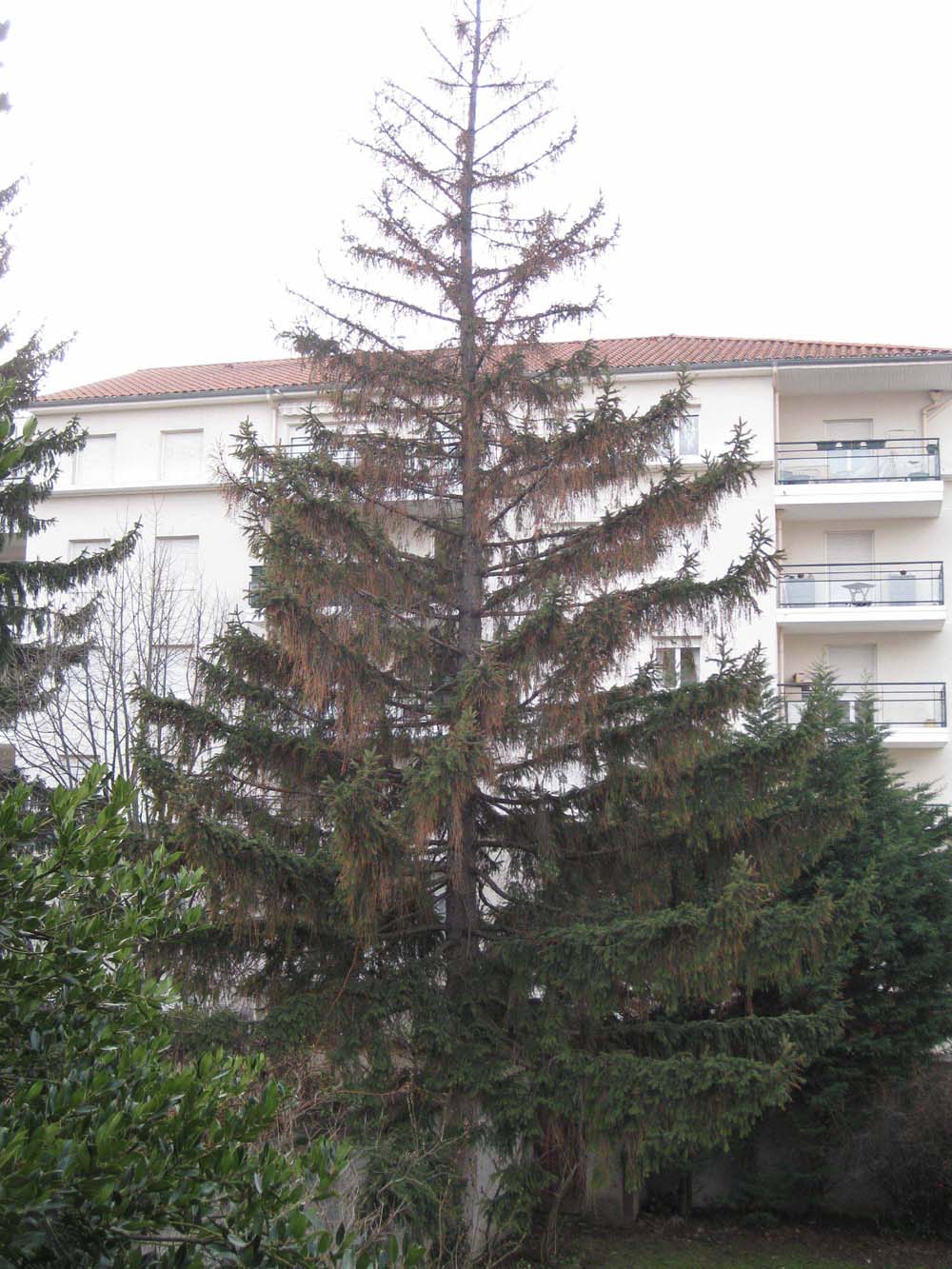 De tous temps le bostryche a existé dans nos forêts d'épicéas il y commettait des dégats tolérables mais cet insecte est devenu beaucoup plus agressif depuis la tempête de 1999, le réchauffement climatique et la pollution et à mon avis, il va A Lyon il devait avoir chaud cet arbre, l'épicéa est une essence montagnarde qui exige une certaine humidité atmophérique.