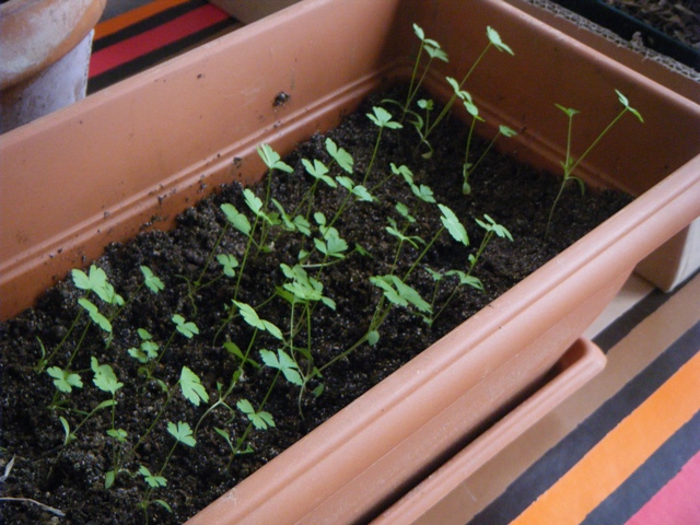 - j'ai rajouté du terreau à mon persil : il a bien supporté (j'ai du enlever les plants et les remettre) et est tout vert. Il cherche toujours le soleil mais le rajout de terreau le maintien mieux en place.