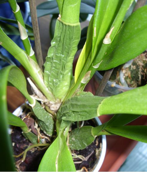 et ses pseudobulbes sont en train de se rider d'une manière assez impressionnante, comme s'ils se vidaient de leur contenu.