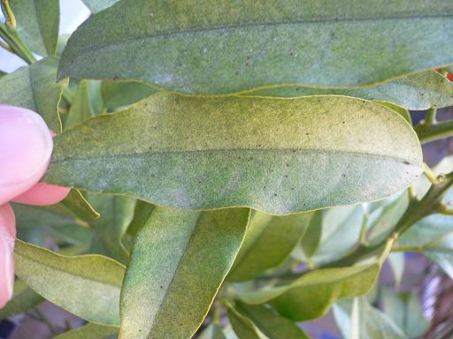 Par ailleurs, le Kumquat n'est pas en très grande forme (cf. les feuilles). Il a toujours quelques chose (c'était des cochenilles jusque là...). Pensez-vous qu'il est "atteint" juste des petites bestioles rouges ou a-t-il autre chose?