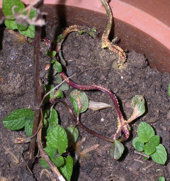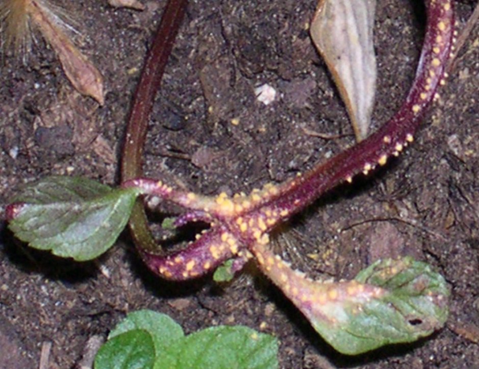 - les points "blancs" laissent des traces blanches-rosées sur les doigts, comme un poudre très fine. (là, je ne vois pas le lien avec de jeunes racine, mais peut-être avec un champignon).