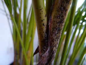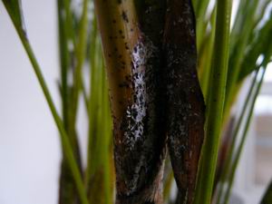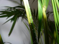 j'ai un areca qui a quelques soucis. Il y a des petites choses blanches sur la base des tiges et qui ont l'air de monter lentement mais surement.