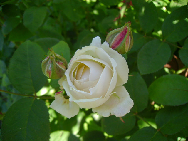 bouture d'un rosier issu d'un jardin du centre ville de toulouse(qui n'existe plus aujourd'hui).Il a mis très longtemps a s'installer et semble vouloir fleurir cette année;mais je ne connais pas le nom et je vais essayer de le mettre à l'identification .J'en ai trois autres issus de boutures mais sans connaitre le nom.Merci pour vos visites