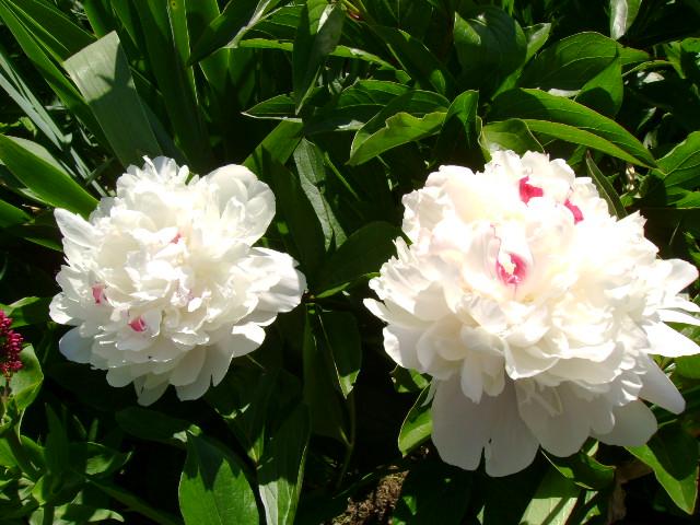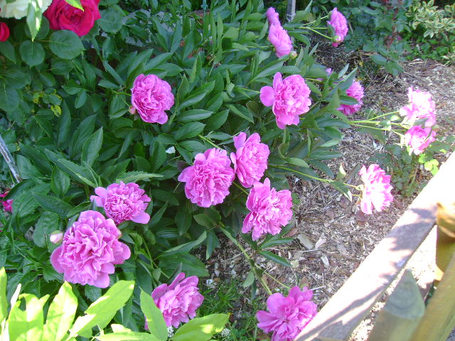 les roses continuent de s'ouvrir et rivalisent avec les pivoines herbacées