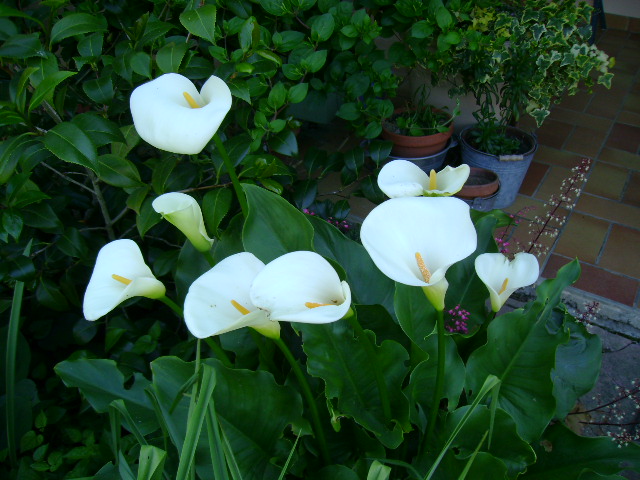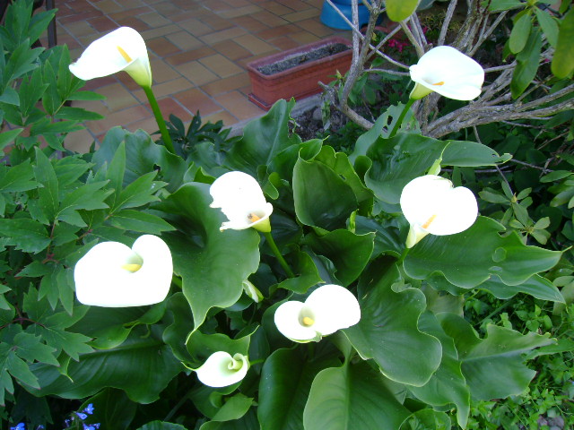 comme dit Rama ils ont des fleurs tes arums !! le mien est mort !! j'avais sauvé des écailles ! plus rien !! mais il y a un bébé envoyé qui est bien reparti ! belles fleurs ! jardinière :top: