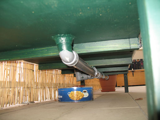 C'est sur ce grillage que se fait le compost. Les liquides s'écoulent par le grillage, et tombent dans 2 "coupelles" pour jardinières.