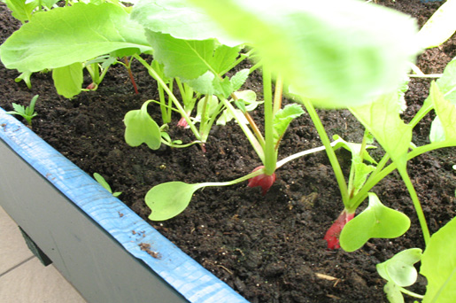 Au sol en tout cas, ça pousse très bien. Laitues, radis, tomates, persil, et un fraisier... Tout est vert et en croissance. Un régal !