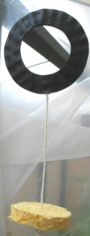 La serre produisant toujours de la buée, il a fallu trouver un nouveau moyen de l'aérer. Ci-jointes les photos d'un autre système d'aération pour une petite serre.