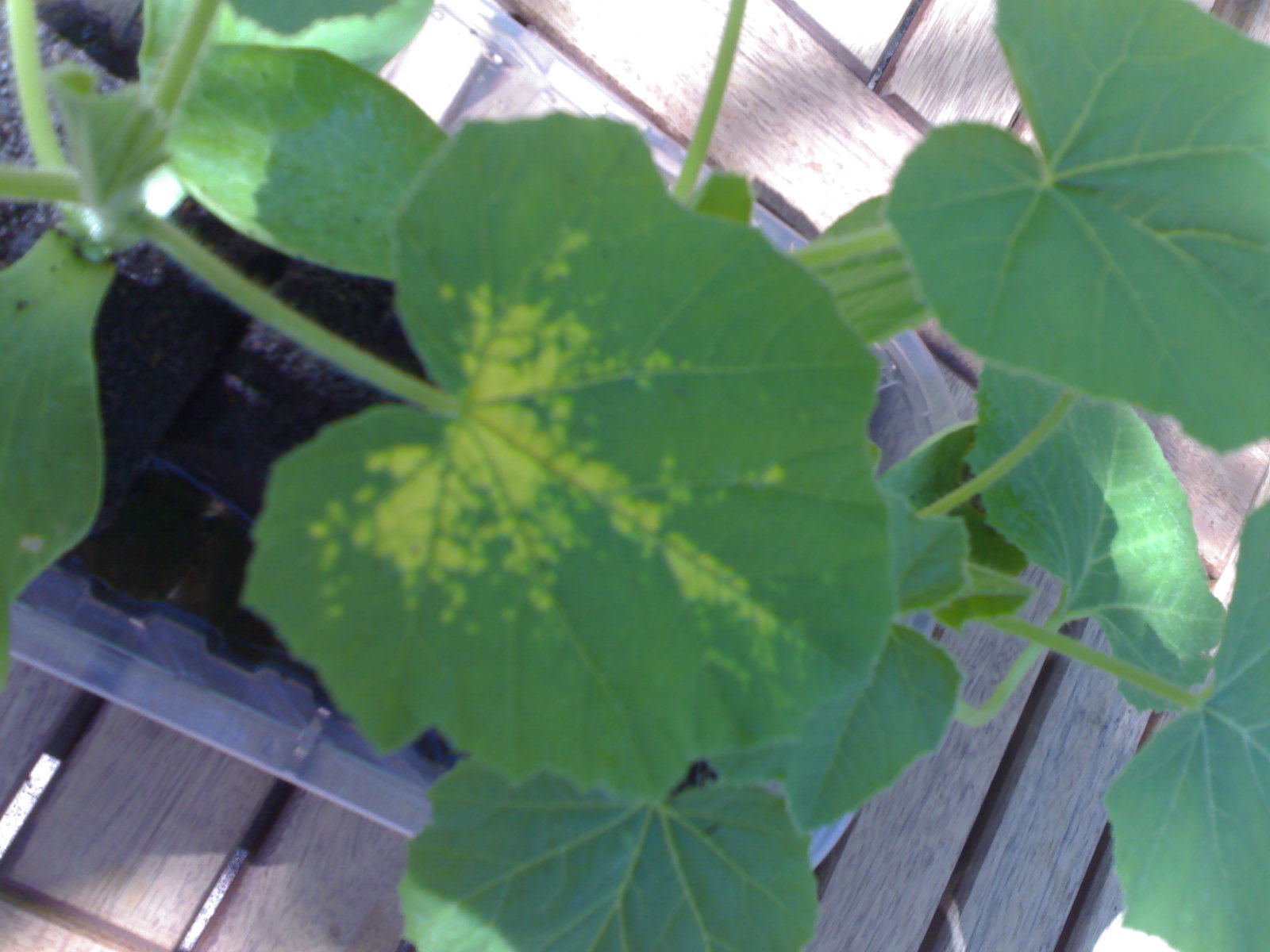 en plus j'ai des tache jaune qui apparaisse sur une des feuille d'un plant, qu'est ce que ça pourrai etre comme maladie de potiron ça!!??