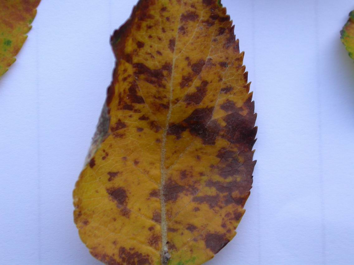 Cela ressemble à la tavelure non ? Pourtant, cette maladie se retrouve également sur mes deux jeunes cerisiers et sur mes deux jeunes pruniers (reine claude) ce qui me laisse penser que c'est autre chose. Une carence ?