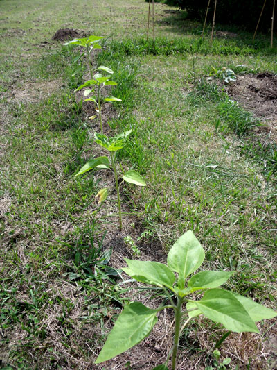 Les tournesols poussent doucement... pas tous à la même vitesse !
