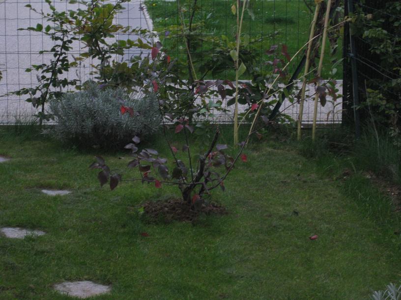En attendant le printemps, voici le cerisier le 4 octobre 2009 et le jardin où il vient d'être planté !