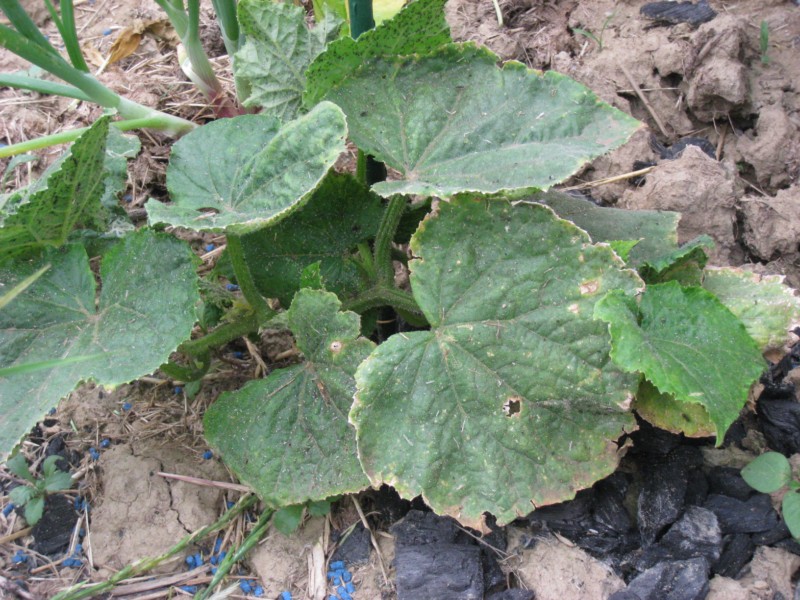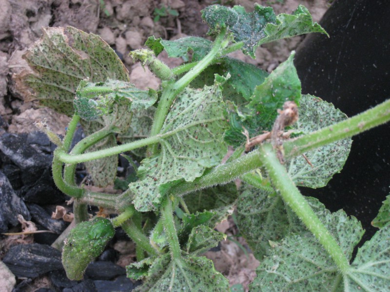 Bonjour, j'ai un souci avec un plan de concombre: il est rempli de points noirs sous les feuilles et semble être en train de mourir, quelqu'un peut-il m'aider?